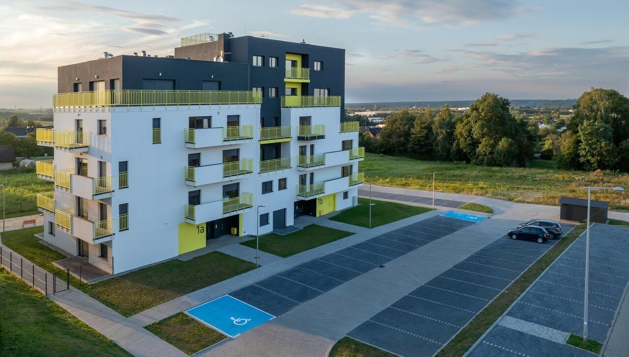 Chcemy się wyróżniać nie tylko bryłą - nasze mieszkania są bardzo przestronne, 3 metry wysokości oraz bardzo duże, ustawne balkony zapewniają odczuwalne poczucie większej przestrzeni i komfortu. Dodatkowo, do każdego mieszkania przynależy również komórka lokatorska. Przy budynku znajduje się parking oraz ogrodzony plac zabaw.