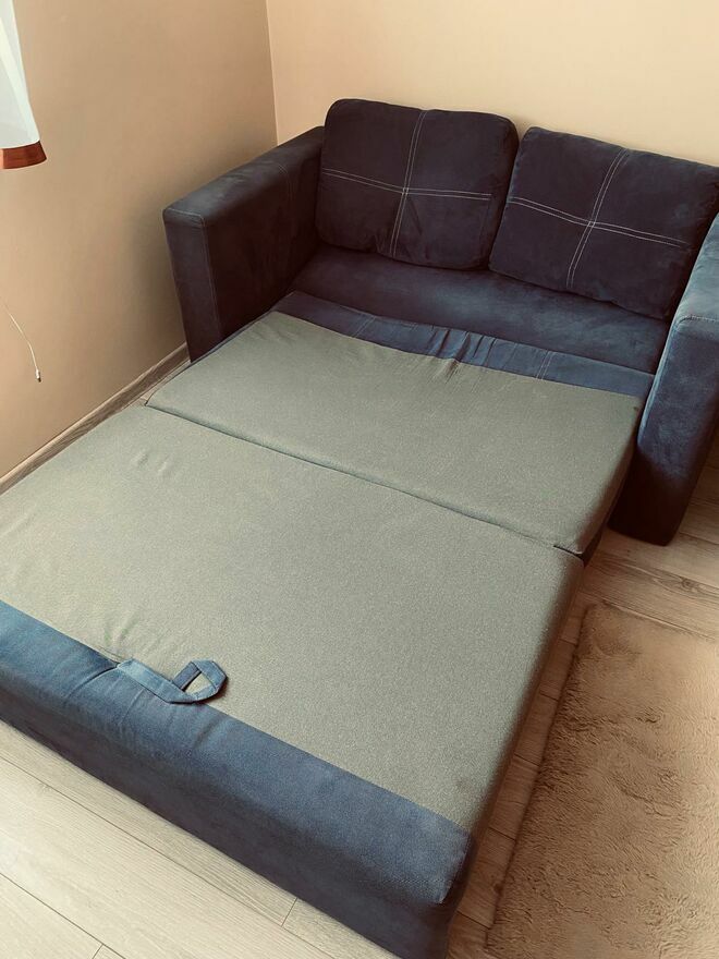 Sprzedam kanapę granatową, powierzchnia spania 200×120cm, po złożeniu 150×90 cmDorota