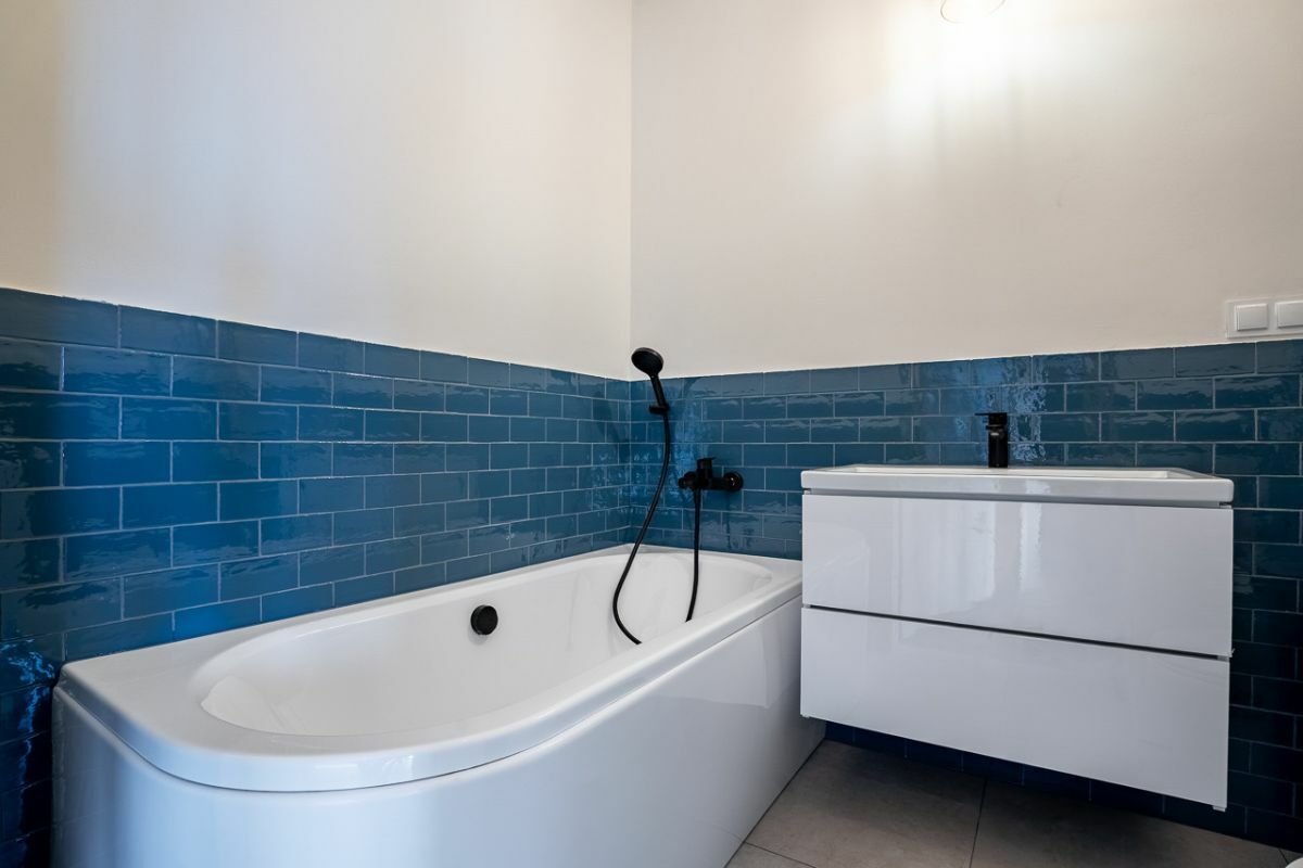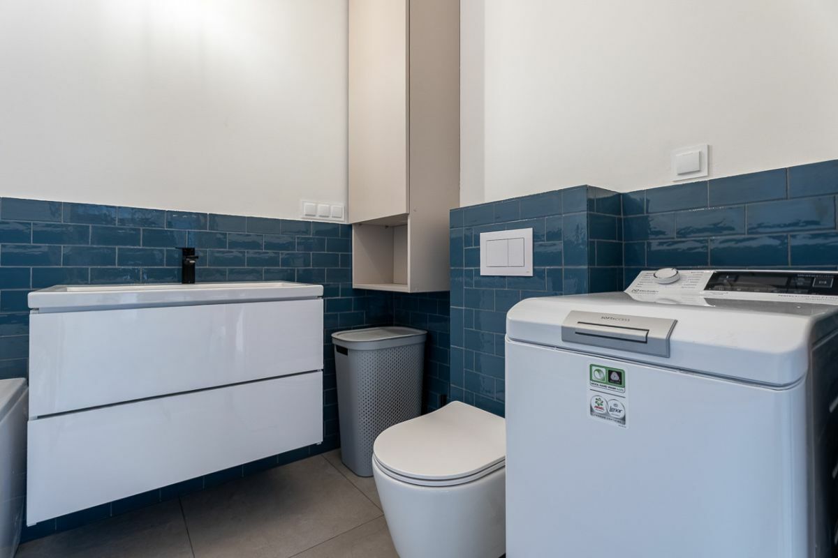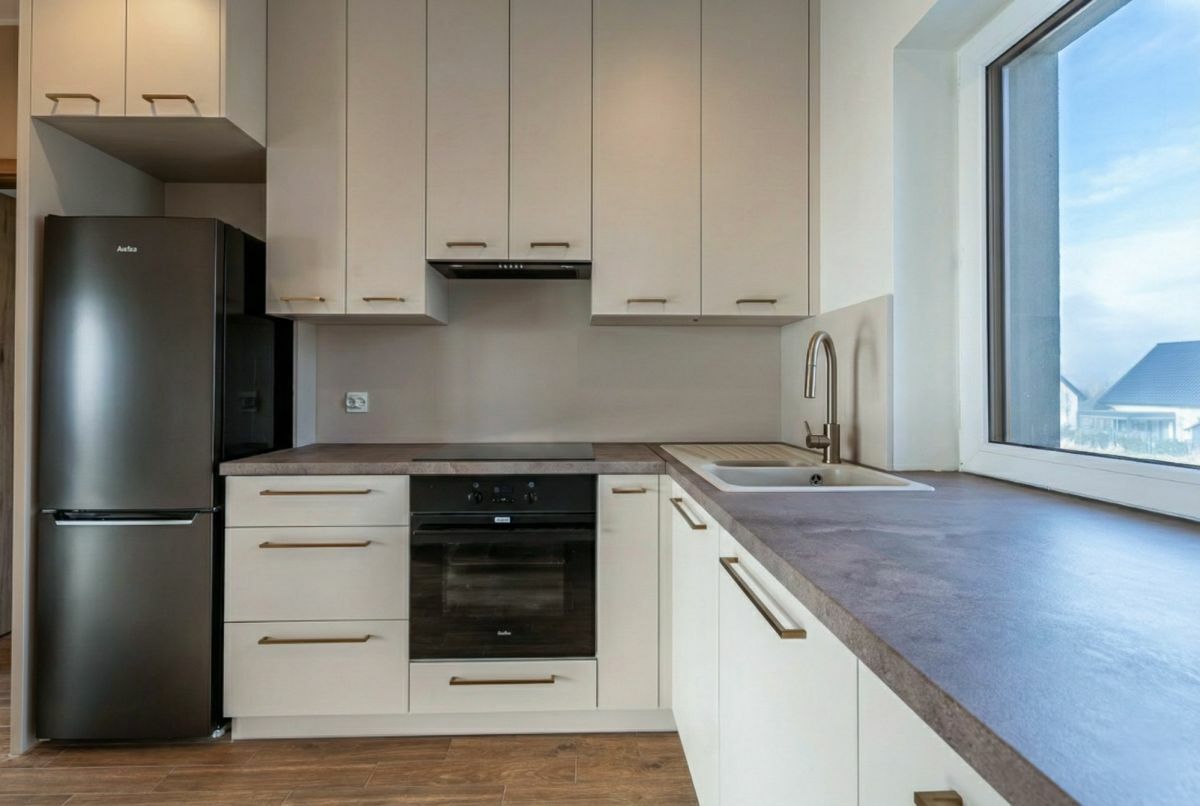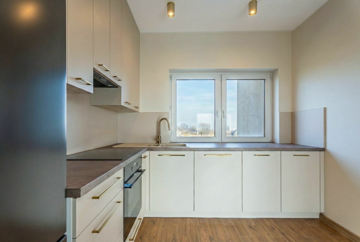 - Wysoki standard kuchni: Aneks kuchenny jest już w pełni gotowy i wyposażony w nowy sprzęt AGD: zmywarkę, lodówkę, piekarnik oraz płytę indukcyjną.