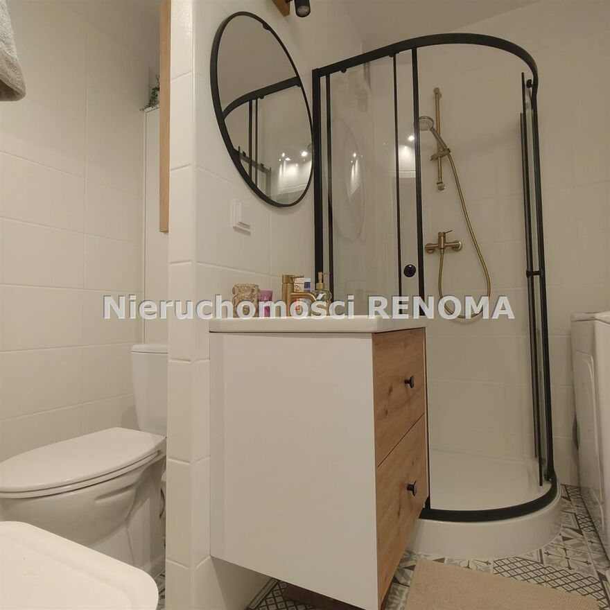 W łazience na ścianie glazura, na wyposażeniu kabina prysznicowa.