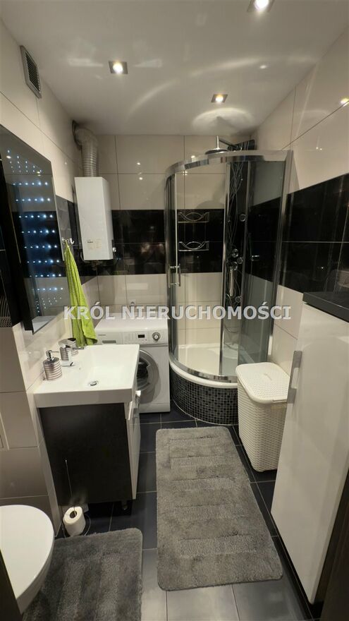 łazienka: po remoncie, nowoczesna armatura, kabina prysznicowa.